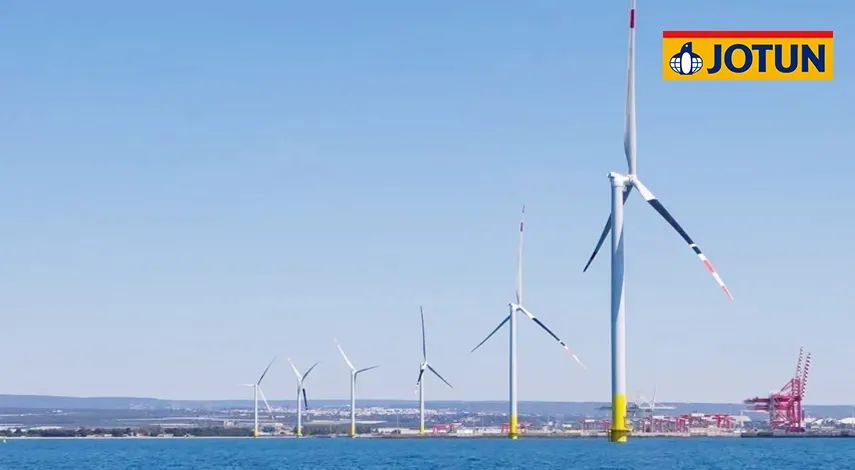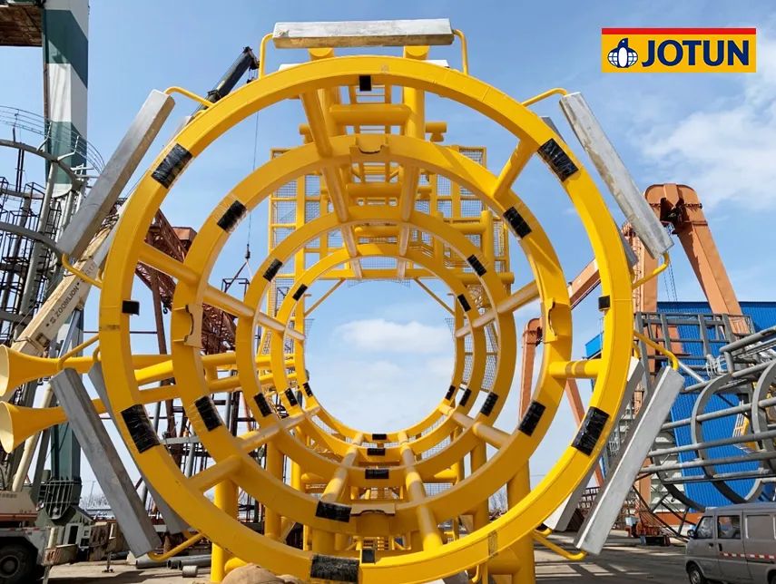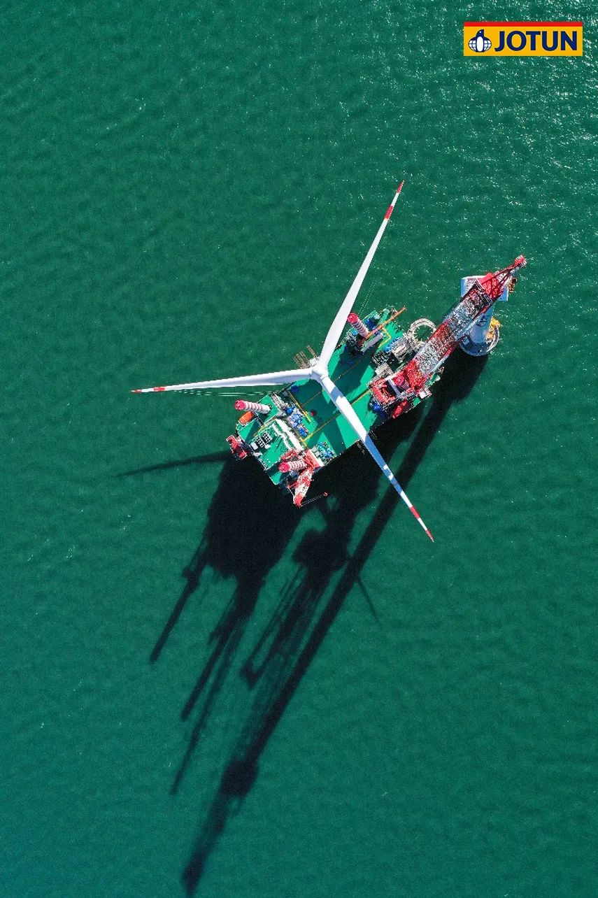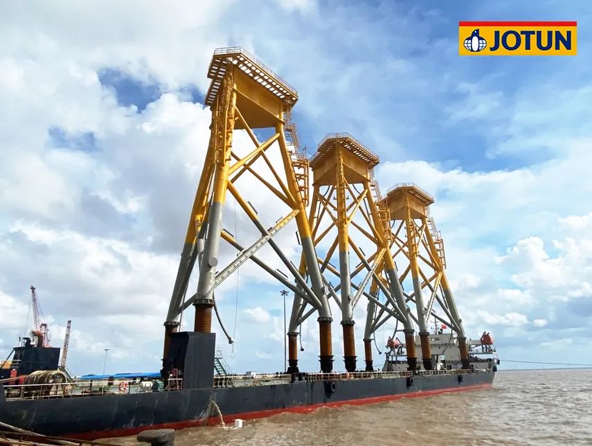 項目總投資102.86億元,規(guī)劃容量500兆瓦,水深范圍41-46米,離岸距離55公里。67臺海上風(fēng)機矗立在水深40多米的海里,風(fēng)機基礎(chǔ)結(jié)構(gòu)采用導(dǎo)管架形式,佐敦為整個項目的導(dǎo)管架涂裝提供了超過700,000升防腐涂料。